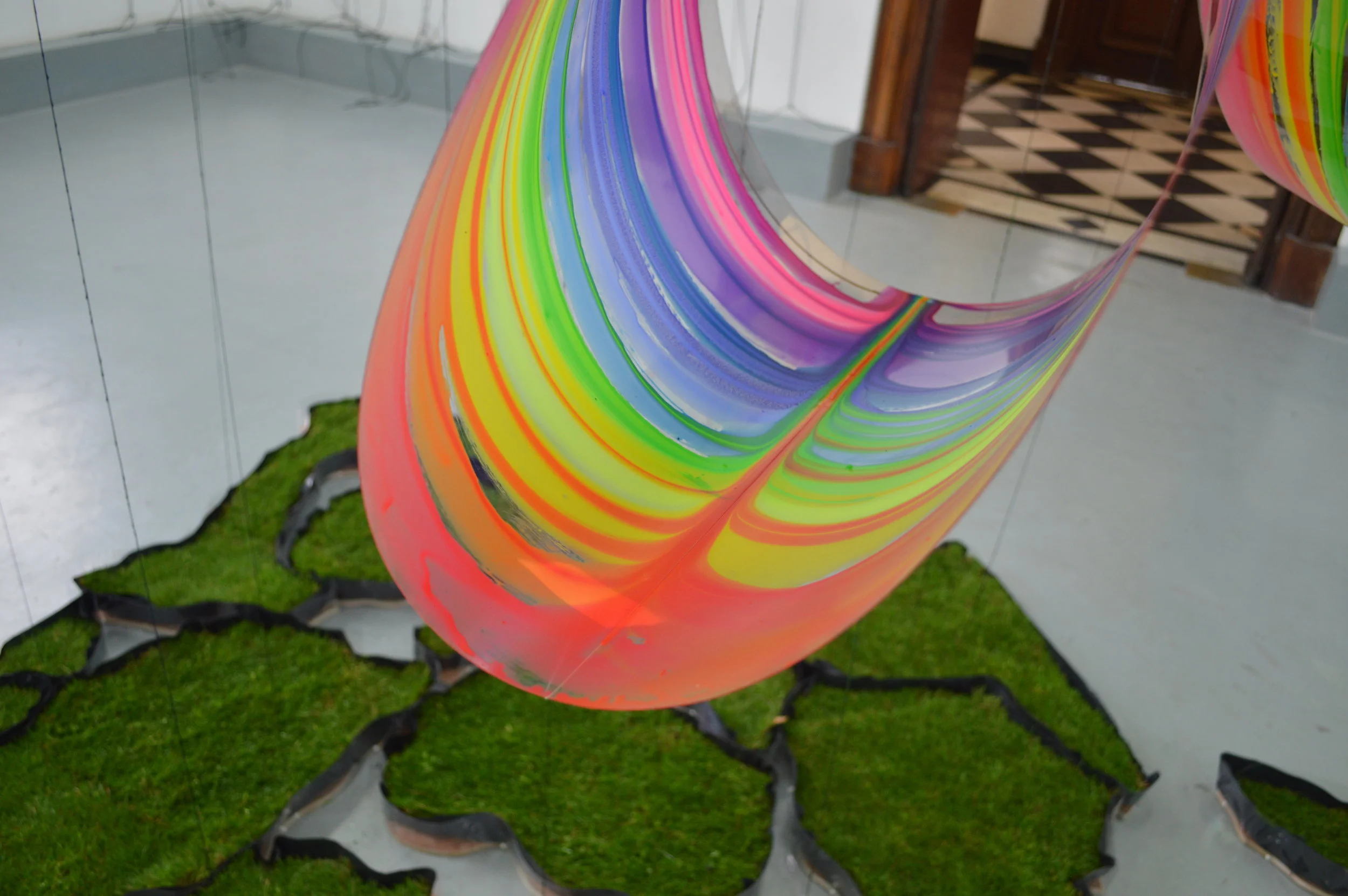 tempo process + grass investigates the connections between spaces and processes. Exploring themes of colour, material, environment and documentation, the installation re-contextualises ‘conventional’ fine art painting practices, considers it within the experience of installation through performative actions.